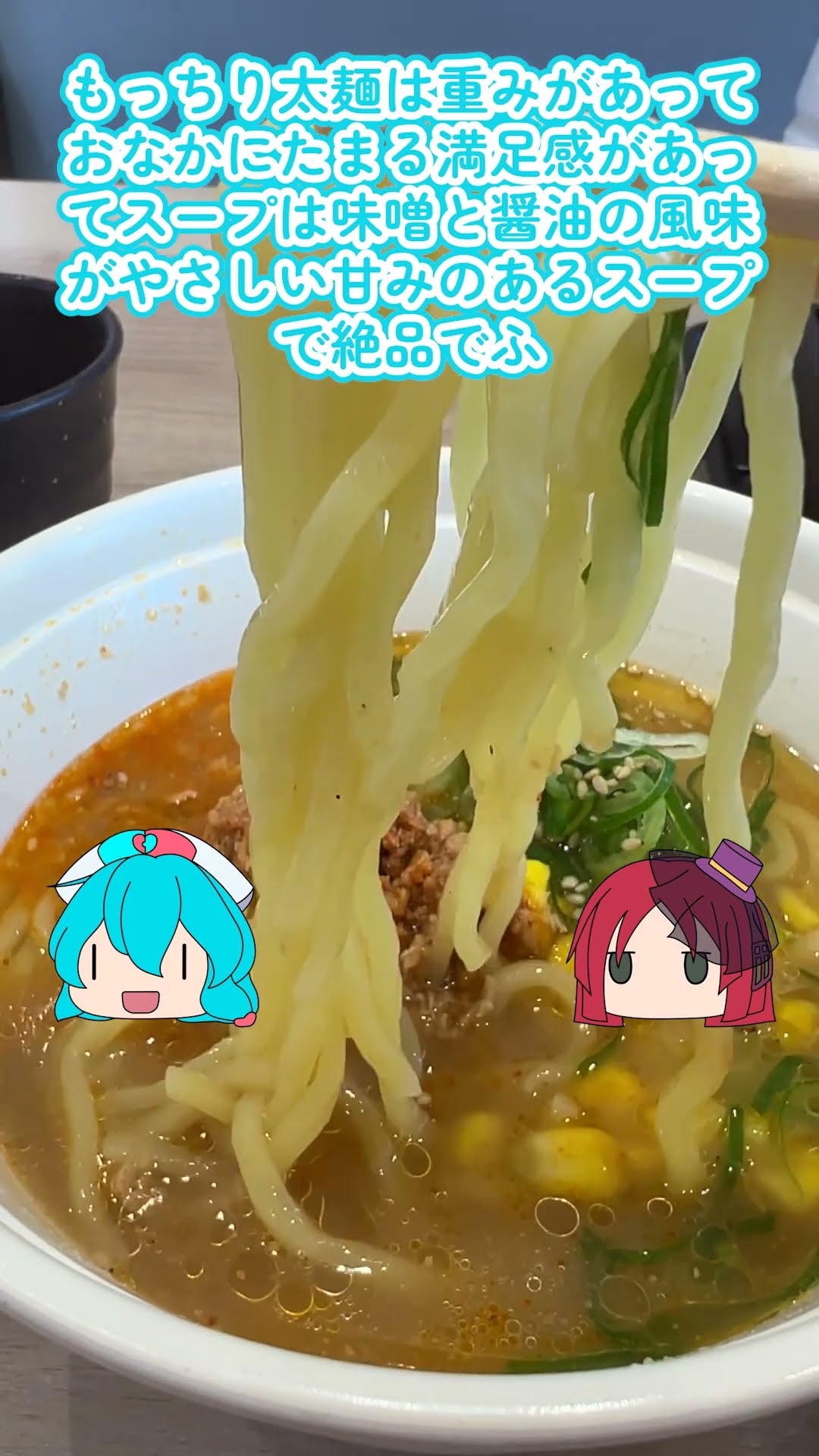 スープは甘みがあって上品でやさしい醤油と味噌の味がするので暖まりますが、