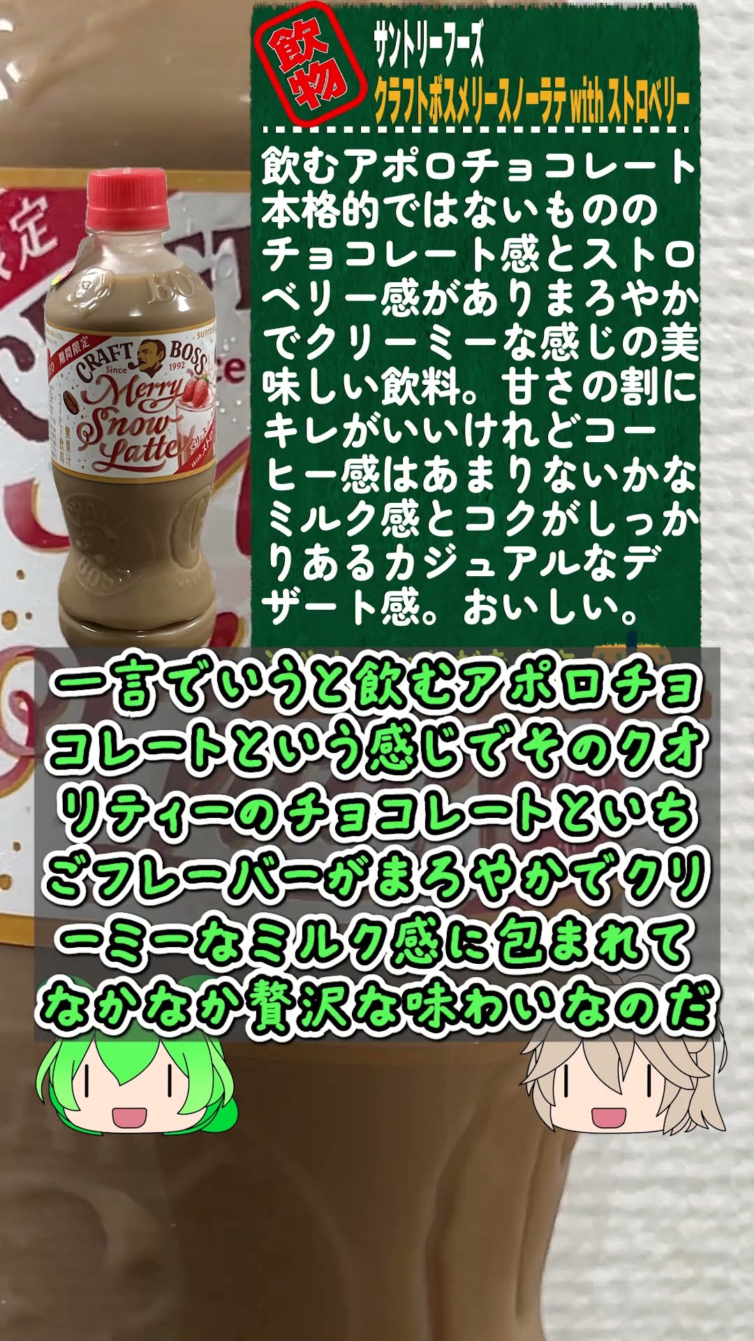 スポンサーリンク サントリーフーズ/クラフトボス メリースノーラテ withストロベリー/4901777422155/2024/11/30 スポンサーリンク コーヒーその他 X Facebook はてブ LINE コピー 2025.02.08 コーヒーその他 サントリーフーズボス この記事は約1分で読めます。 スポンサーリンク スポンサーリンク 目次 ▶飲食レビュー■お味についていいね: ▶飲食レビュー Amazonで商品の詳細を見る スノーといちごのラテ[サントリーフーズクラフトボスメリースノーラテwithストロベリー ]#shortsサラネ()のメイン企画、飲食レビューの動画版です。馬鹿舌が身体を壊しながらひたすら甘いものを接種します。 #ずんだもん #春日部つむぎ #ソフトドリンク#ボス#boss #サントリーフー... ■お味について Amazonで商品の詳細を見る いいね:いいね 読み込み中…