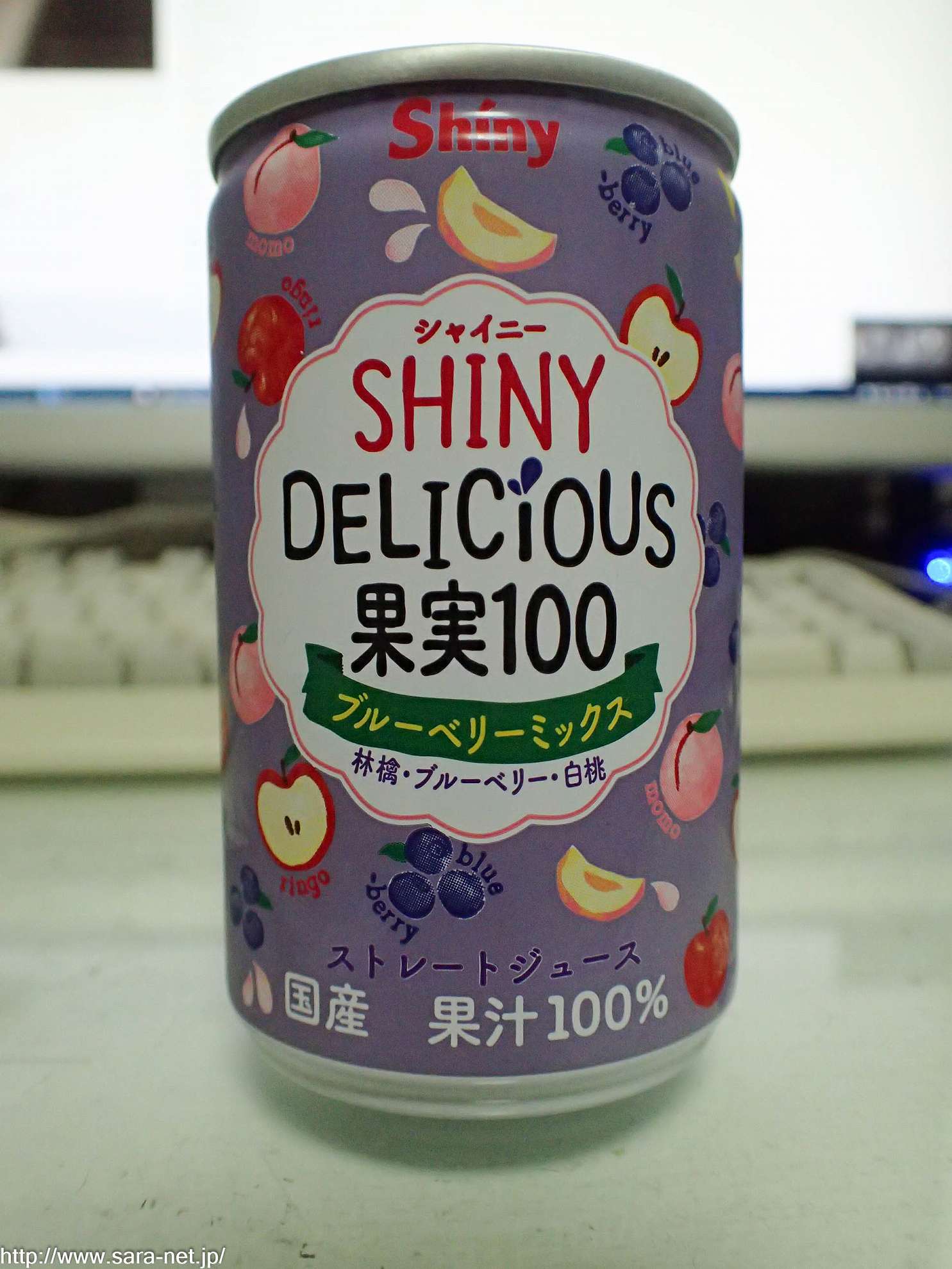 たべものレビュー青森県りんごジュースシャイニーデリシャス果実100ブルーベリーミックスブルーベリージュースでございます。なかなか、着眼点が面白そうなストレートジュースでございます。撮影日は2016年05月