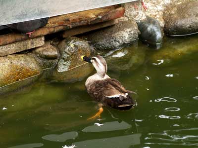 横取りされたのかそれとも出られなくなったのか、それを見て呆然としているようなカルガモでした。
