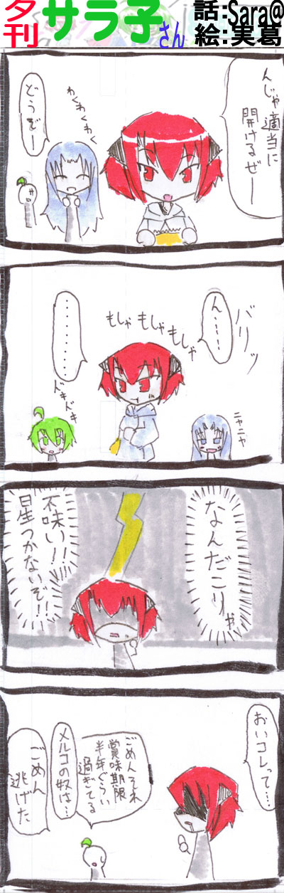 スポンサーリンク {夕}お菓子4,19 スポンサーリンク 夕刊サラ子さん X Facebook はてブ LINE コピー 2007.05.27 夕刊サラ子さん この記事は約1分で読めます。 スポンサーリンク あくまで架空の話であり、絶対に真似はしないでください。 そして、食べるときは賞味期限を確認しましょうということで・・・ いいね:いいね 読み込み中…