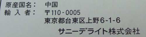 原産国 :中華人民共和国(中国)