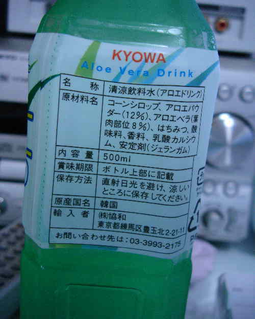 んで、韓国産アロエ飲料!微妙な色!微妙な味!最近思うんだけれど、韓国人と日本人って味覚が同じように見えて違うんでしょうね。