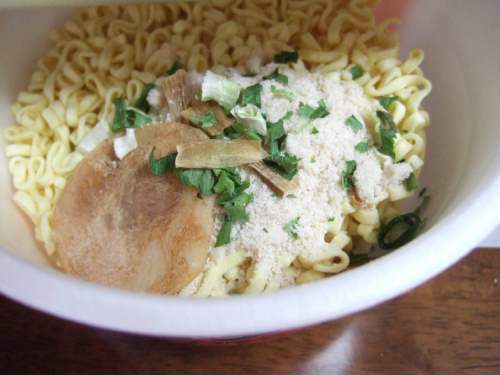 麺が甘くカップラーメンの具に入ってるかまぼこみたいな味がする所を見るとどうもそれっぽいです。